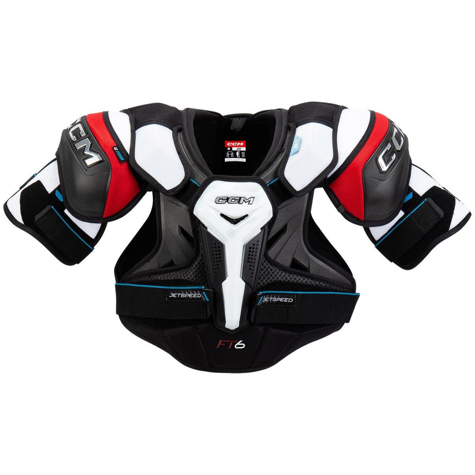 Переходячи безпосередньо до конструкції плечових накладок Jetspeed FT6, CCM використовує посилену конструкцію з литим пінополіетиленом. Також буде забезпечена максимальна вентиляція для охолодження, щоб допомогти зберегти ваше тіло та спорядження легкими протягом всієї гри. Цей низькопрофільний крій забезпечить відчуття щільного прилягання до тіла та велику свободу рухів. Це поєднується з надлегкими плечовими накладками з Ufoam, які забезпечують надійний захист у легкому корпусі.