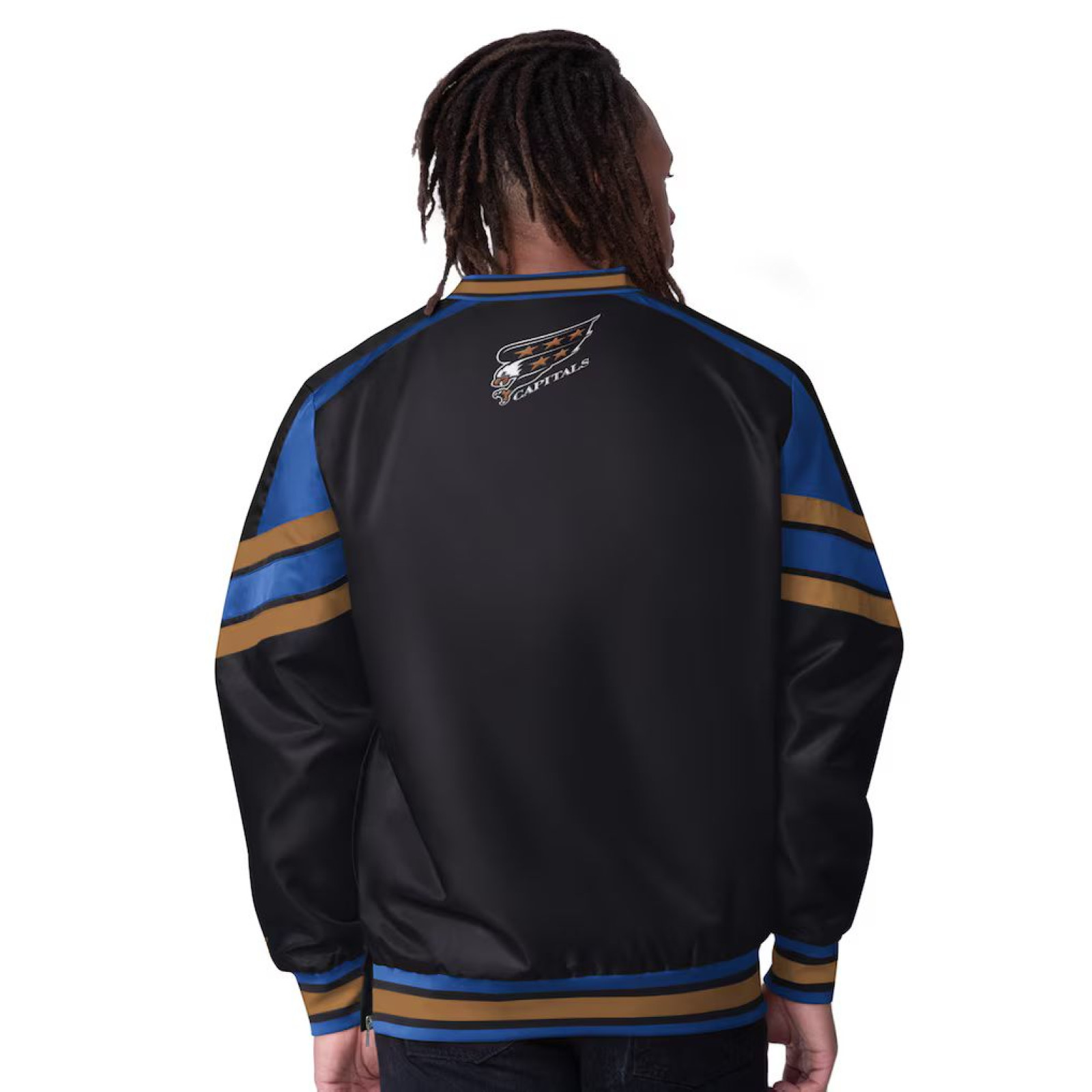 Вишита аплікація з саржі на грудях та логотип команди у верхній частині горловини ззаду гордо демонструють вашу відданість команді «Вашингтон Кепіталз».